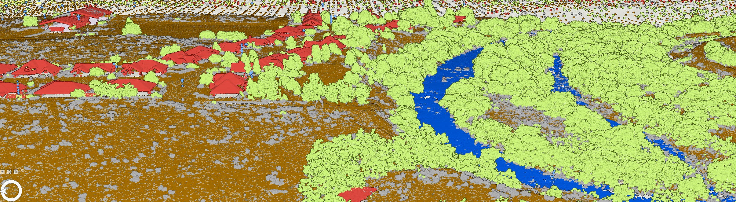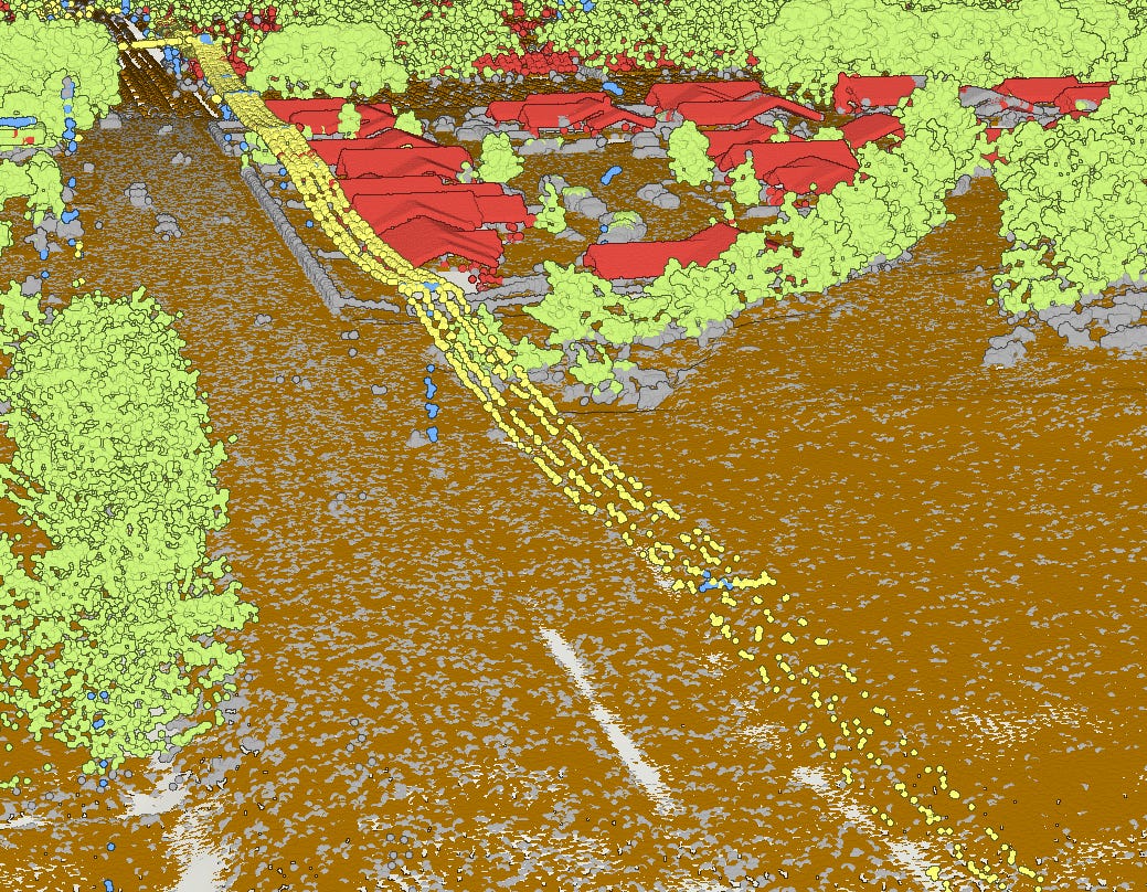 The LiDAR point cloud I used in the Microsoft Planetary Computer catalog comes from the USGS (U.S. Geological Survey) 3DEP program, also known as the 3D Elevation program. The program has elevation data for over 98% of the land area of the United States. The data is available through the 3DEP LiDAR Explorer. As you might expect, the data comes with the ground already classified—it’s use in 3DEP is apparently mostly concerned with elevation. But the raw point cloud should contain the other data as well.